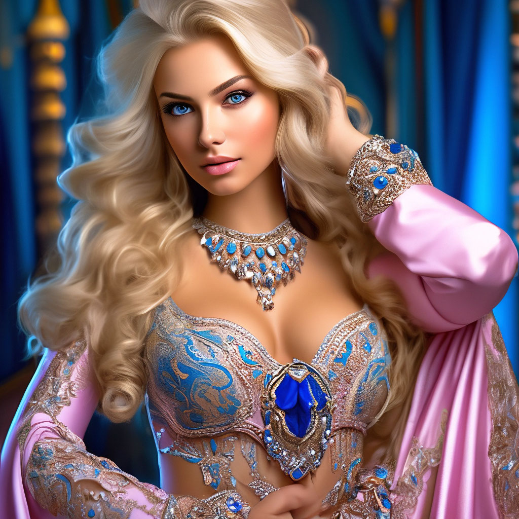 Профессиональное фото, арабская принцесса, бюст, грудь, светлые волосы, голубые