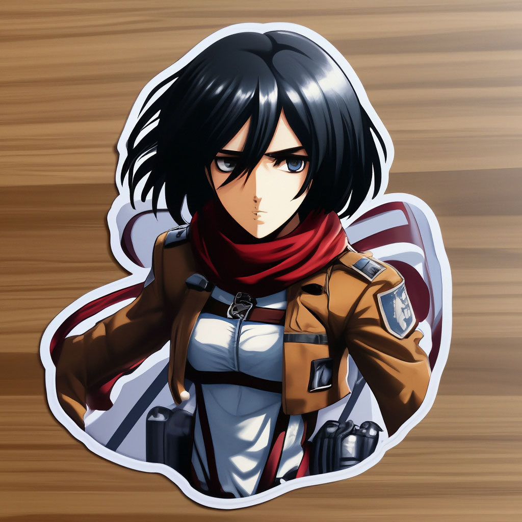 "Mikasa Ackerman from the anime Attack of the Titans, sticker" - image created i