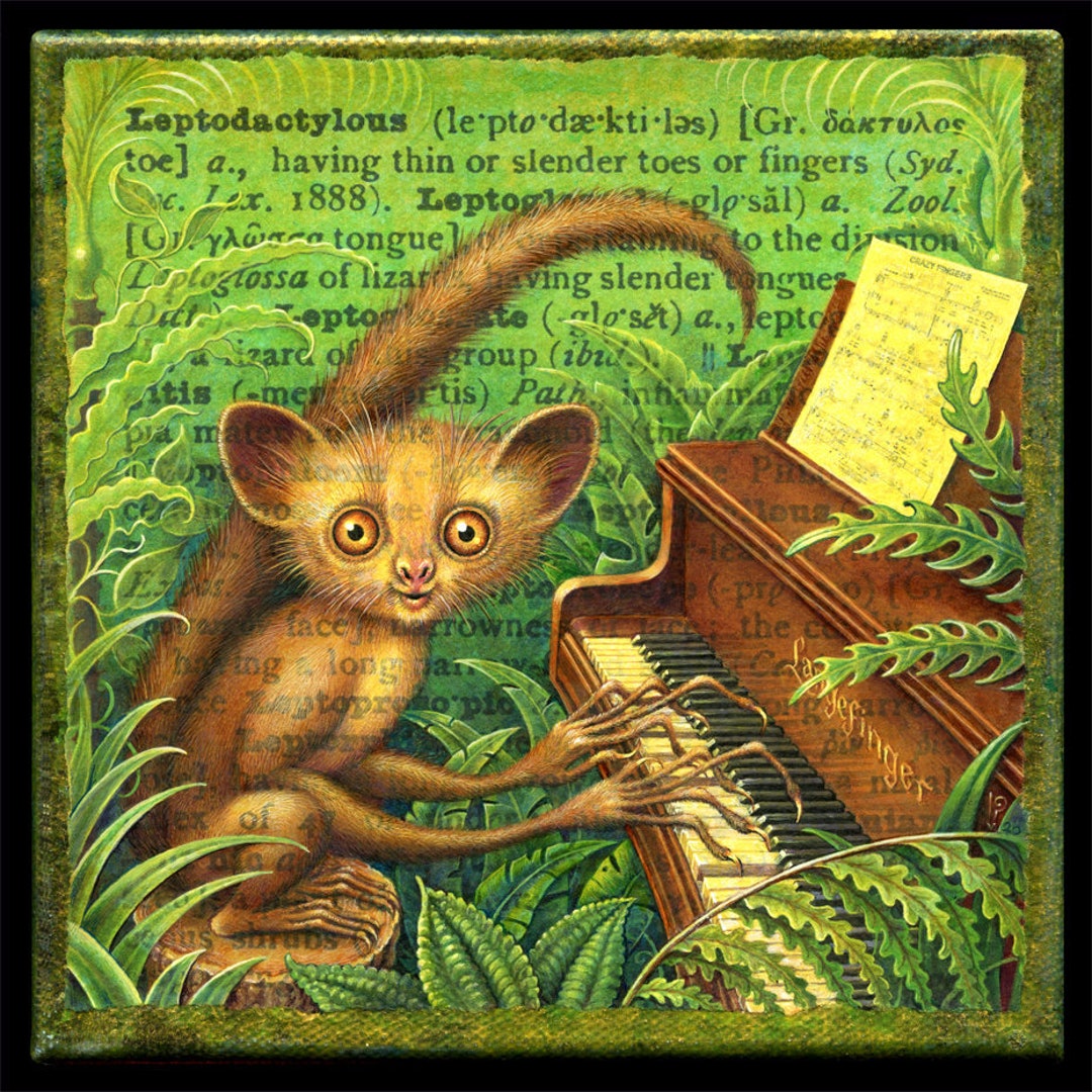 Funny piano art print, Leptodactylous: Aye-aye pianist makes music with crazy fi