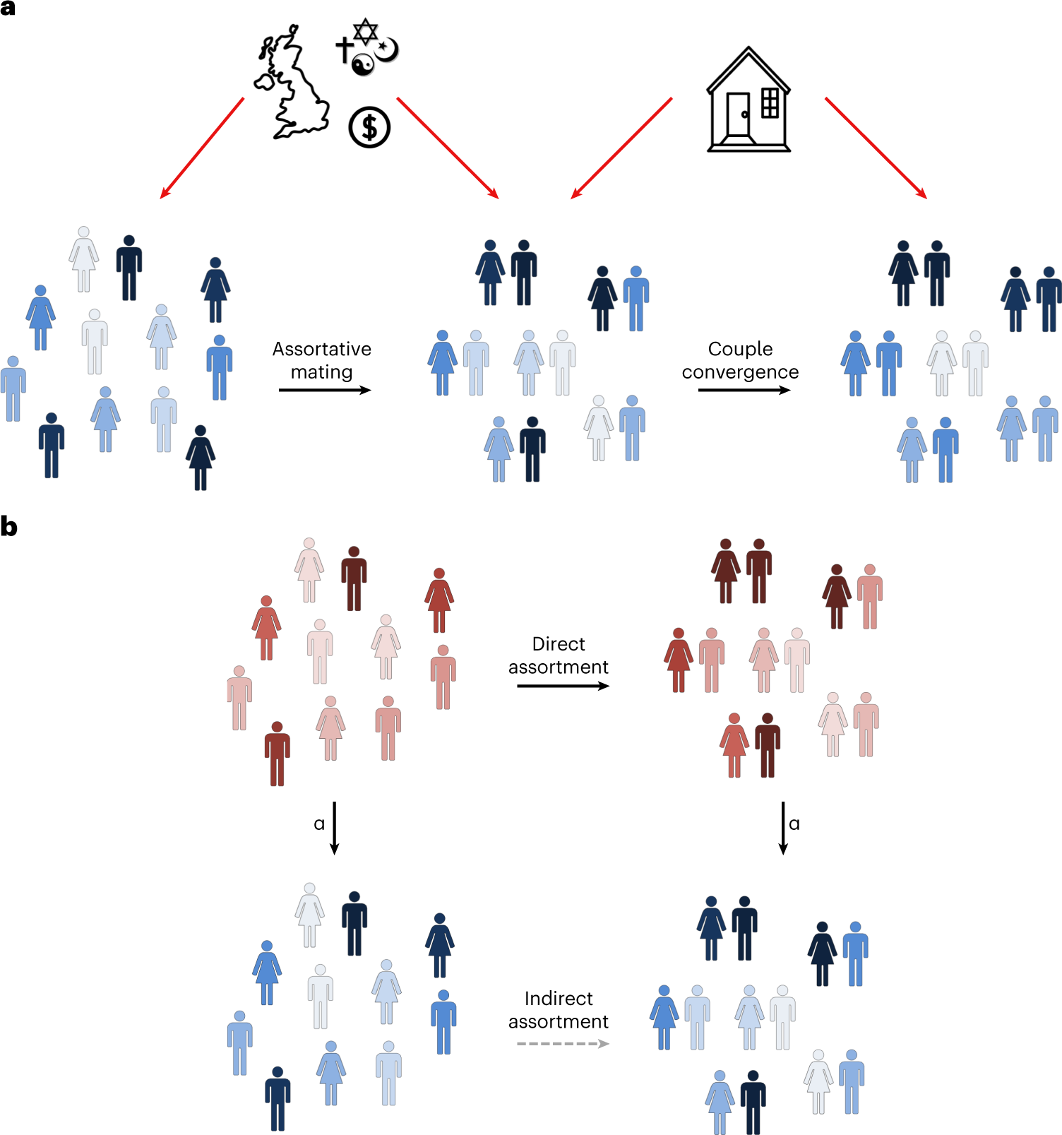 Partner choice, confounding and trait convergence all contribute to phenotypic p